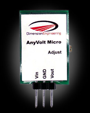 The AnyVolt Micro is pin-compatible with the common 78XX series of linear voltage regulators, so it will work with breadboards and other popular prototyping methods.