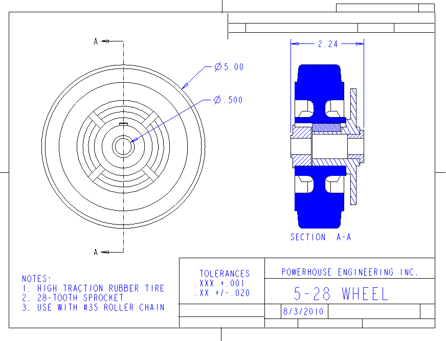 of a geared-down drive motor. Our wheel/sprocket/bearing combination will solve