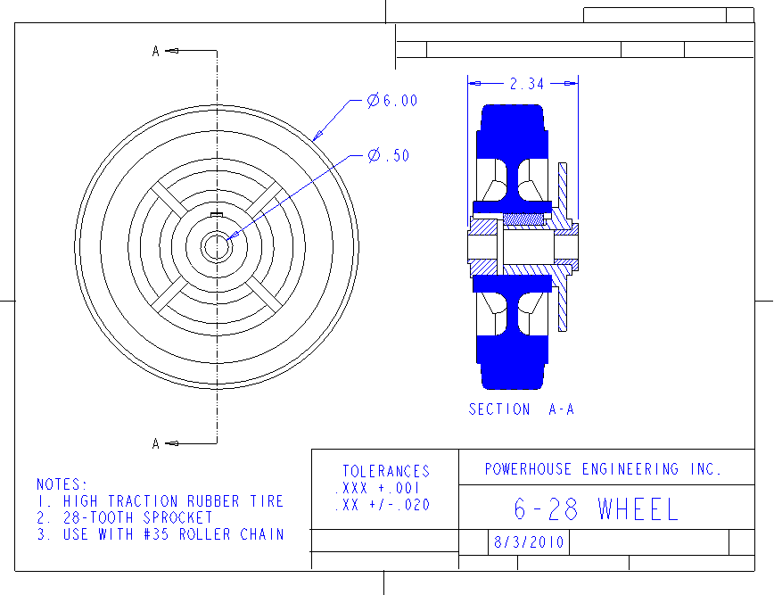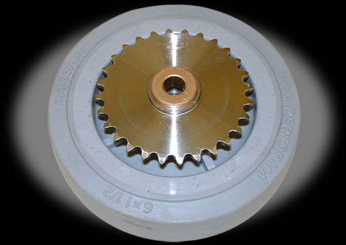 of a geared-down drive motor. Our wheel/sprocket/bearing combination will solve