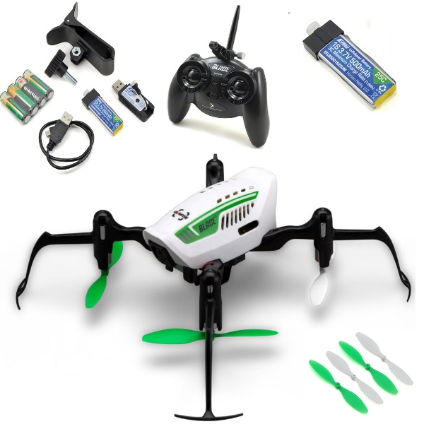 The Blade® Glimpse™ drone is the ideal platform for getting started in aerial cinematography. Despite its nano-size, the durable design can fly indoors or out and features an integrated camera with HD recording plus FPV video down-link capability. SAFE® technology helps keep the drone steady and you in control from hover to forward flight and back again. Li-Po power allows up to seven minutes of video while the included USB charger can have you ready to fly again in no time.
