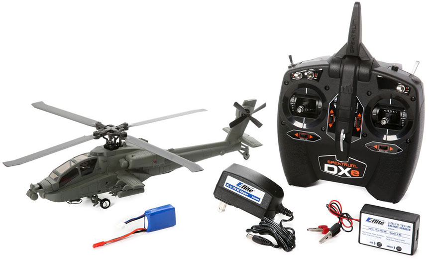 The Blade® Micro AH-64 Apache™ features exclusive SAFE (Sensor Assisted Flight Envelope) technology, a revolutionary electronic flight envelope protection system that gives you the protection of Panic Recovery mode which returns the heli to level flight so you can prevent a crash at the push of a button.