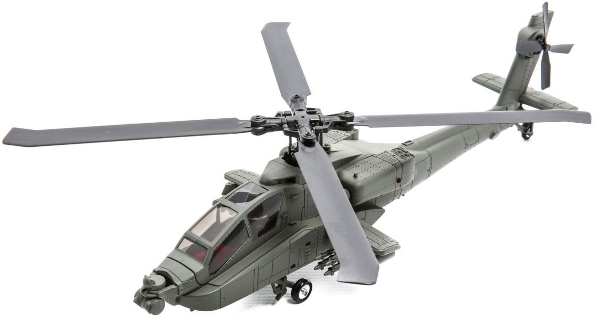 Whenever the United States military is called upon to settle a skirmish or major conflict, the Boeing AH-64 Apache™ attack helicopter is sure to lead the fight. That's because few VTOL capable aircraft are as well equipped, heavily armed or self-reliant. Some RC models of the Apache are large, expensive, require significant talent to assemble and even more skill to fly. The Blade® Micro AH-64 Apache captures the pride of the U.S. Army and is officially licensed by the Boeing Aircraft Company. Standout details like a functional four-blade head, collective pitch mechanics and brushless power make it enticing to the experts, while innovative SAFE® technology gives you the push-button ability to prevent a crash.