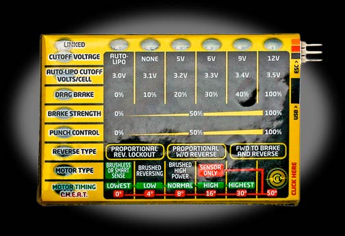 Sidewinder Micro, Mamba 25, Mamba Micro Pro, Sidewinder 1/10th, Mamba Max (only connects using the throttle cable. You must upgrade the Mamba Max to software version 1.23 or higher with your Windows PC to enable throttle cable USB connectivity), Mamba Max Pro, and Mamba Monster (all versions).