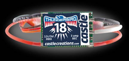 All Thunderbird controllers are ready to fly straight from the package, no programming necessary. They are defaulted to AUTO LIPO detect and no brake. Should users wish to modify these settings, they may do so using their transmitter or with Castle’s incredible Castle Link USB Programming Kit.