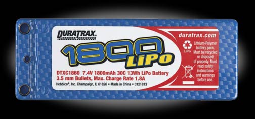 0-DTXC1860 DuraTrax 1800mAh 7.4V 2S Double Cell 30C LiPo Pack - Bullet Connector <table width="100%" border="1" cellspacing="0" cellpadding="0">