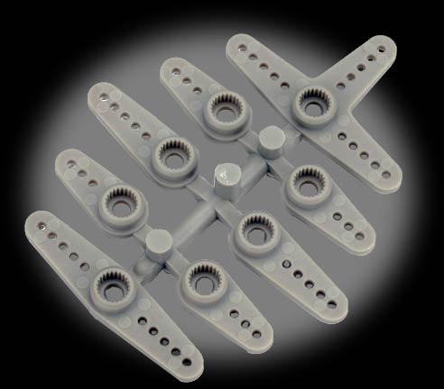 4 short, 2 long servo arms that extend in one direction from the servo center