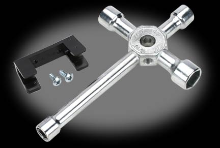 4-way socket wrench with 3-1/8in extra long glo-plug arm. A specially designed Storage Klip mounts securely to field boxes for immediate access. Three built in glo-plug holders securely hold glo-plugs for easy installation and removal.