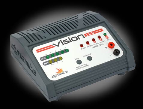 Redesigned for the ultimate in power and versatility, Dynamite's Vision chargers provide users with a new look, upgraded features and insane power. Unlike some of the competitors in the marketplace today, the Vision chargers provide continuous charge currents which charges at a faster rate versus the "non-continuous" charge method other brands utilize. In addition, the Vision series combines great looks with reverse polarity and short circuit protection, banana plug inputs and AC/DC switching power supplies.