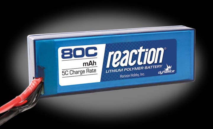 Dynamite¨ Reaction¨ 80C batteries are perfect for anyone that demands more performance from their RC vehicle. These affordable, high power batteries provide an 80C discharge rate even in the most demanding RC applications. Built for extended run times and consistent performance in most 10th and 8th scale vehicles, Dynamite Reaction batteries ensure you get the most power and performance out of your vehicle.