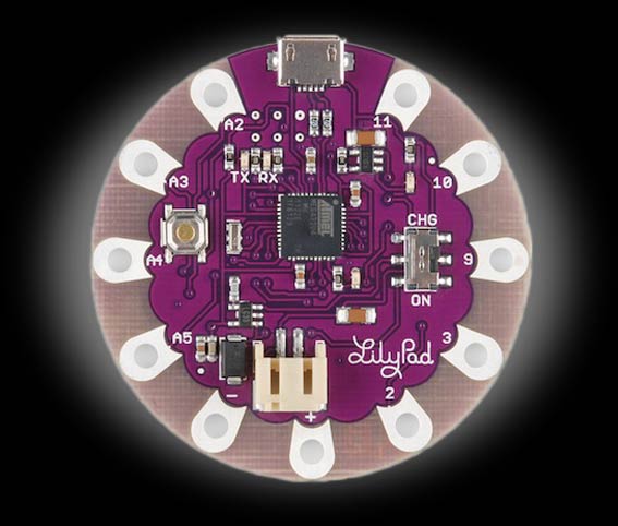 The LilyPad Arduino USB is a microcontroller board based on the ATmega32u4. It has 9 digital input/output pins (of which 4 can be used as PWM outputs and 4 as analog inputs), an 8 MHz resonator, a micro USB connection, a JST connector for a 3.7V LiPo battery, and a reset button. It contains everything needed to support the microcontroller; simply connect it to a computer with a USB cable or power it with a battery to get started.
