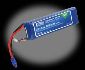 E-flite 2500mAh 11.1V Triple Cell 3S 30C LiPoly Pack, 12g wire, EC3 E-Flite High-Power Lithium Polymer Batteries offer an excellent blend of weight, power, and performance.