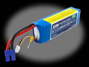 E-flite 3000mAh 11.1V Triple Cell 3S 30C LiPoly Pack, 12AWG EC3 E-flite High-Power Series Lithium Polymer Batteries offer an excellent blend of weight, power and performance.