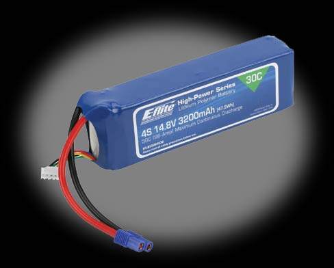E-flite 3200mAh 14.8V Quad Cell 4S 30C LiPoli Pack, 12Ag wire, EC3 E-Flite High-Power Lithium Polymer Batteries offer an excellent blend of weight, power, and performance.