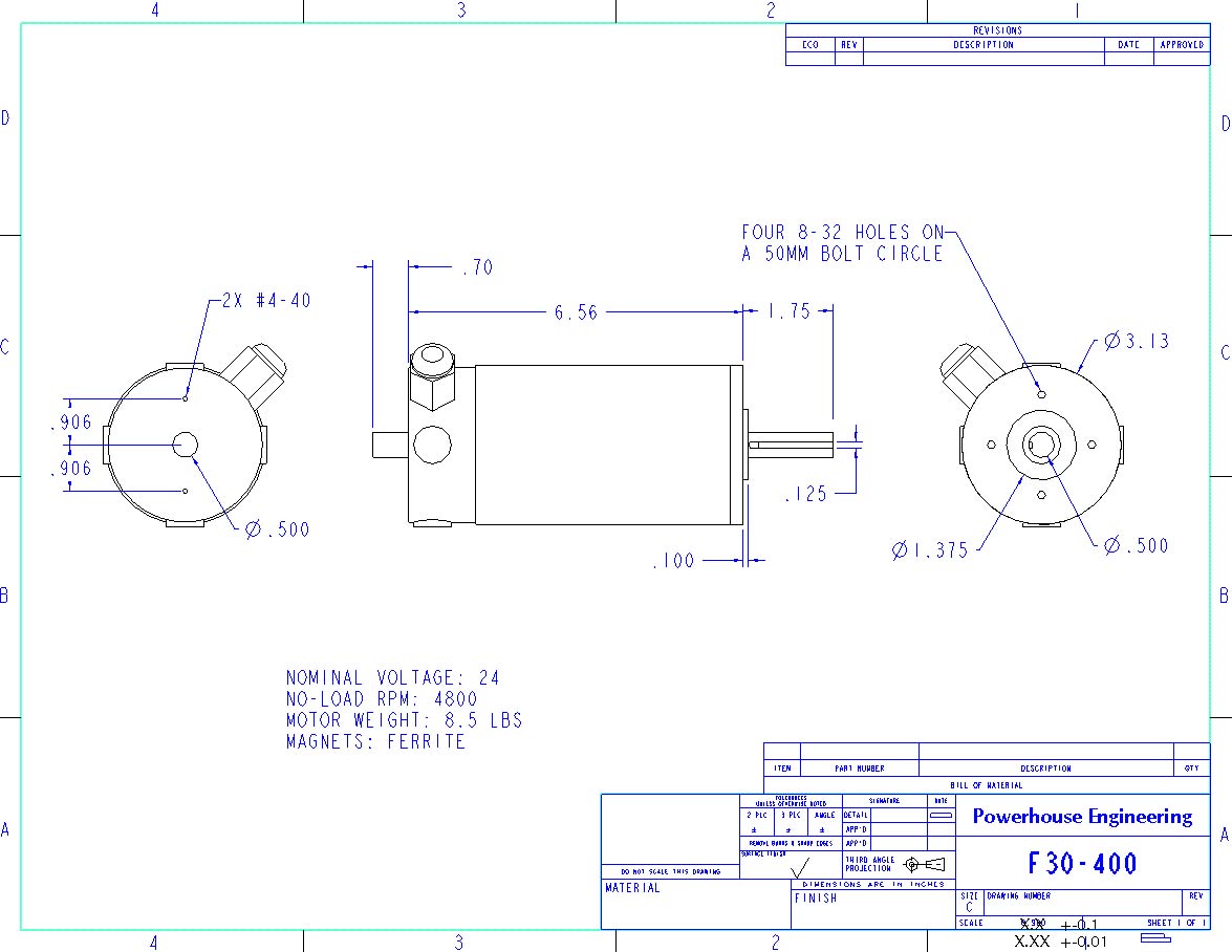 The mid-range F30-400 motor is designed for the highest performance and efficiency while still using the less expensive ferrite magnets. |