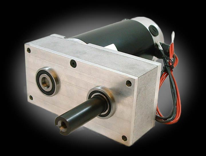 This picture shows the speed reducer undergoing a torque capacity test. The motor is locked and unable to turn. Weight is loaded onto the end of the 40-inch bar until the speed reducer fails. The failure point is 3500 inch-pounds. This gives an almost 2-to-1 margin of safety when used with our most powerful motor, the A28-400.</font></p>