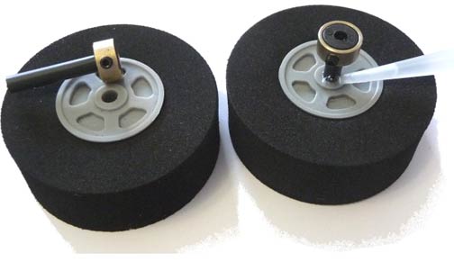 Lite Hubs press into Lite Flite wheels, providing a secure and very lightweight method of mounting a wheel onto a motor shaft. The new brass collars mean you can tighten the setscrew as hard as you want without worrying about stripping the threads!