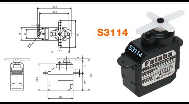 Futaba S3114 Micro High-Torque Servo Ideal for electric planes and small electric helis.