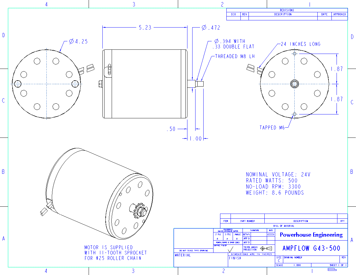 The big G43-500 motors work great for applications that require sustained power output of up to 500 Watts (0.67 horsepower).