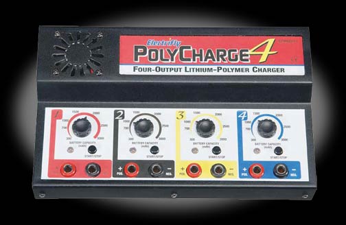 NOTE: The instructions for the ElectriFly PolyCharge4 charger state the built-in fan turns ON when a load is present on any of the four outputs. This is incorrect. The fan turns ON any time input power is applied to the charger. We regret this error.