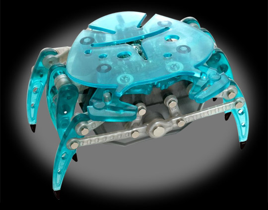 Crab will change direction autonomously in pre-programmed intervals or in reaction to loud noises.