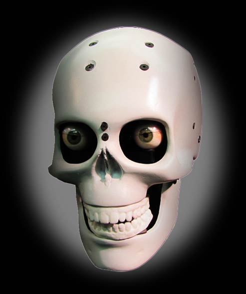 The Mecha Hitsu Gen2 animatronic head was developed by Custom Entertainment Solutions to provide a robust mechanical head platform for any number of applications. The design allows for the programmer to animate this head quickly (only 3 servos to manage). A standard 0.5in. neck socket at the back/base of the head allows for easy connection to an existing robotic or animatronic figure or even the Industrial Animatronic Neck Mechanism. Custom Entertainment Solutions can also provide tailor-made animatronic robotics to your specifications.