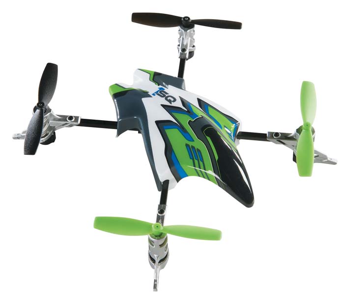 This is the Canopy Set in Green for the Heli-Max 1SQ and 1SQ V-Cam Helicopters. Plastic construction. Green, blue, black, gray, and white color scheme. Canopy with two Black and two Green Rotor Blades included.