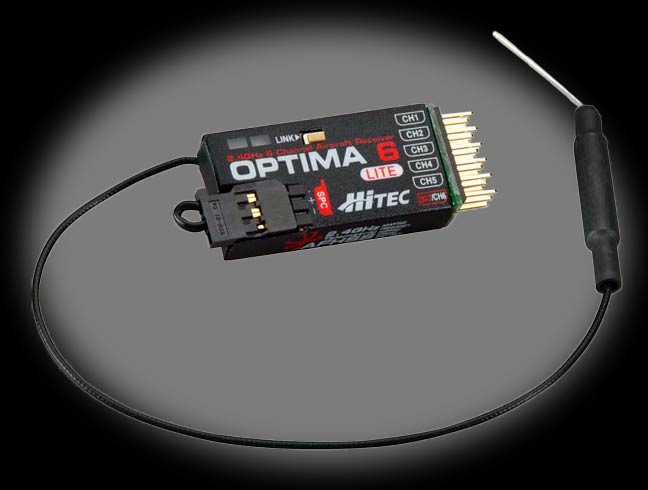 The already lightweight Optima 6 went on a diet and the Optima 6 Lite is the result. Built with a thin Lexan case and weighing under 10 grams, the ultra-dependable, full-range 6-channel receiver is the perfect answer for small aircraft. The Optima 6 Lite utilizes Hitec's 2.4GHz AFHSS technology, exclusive single Boosted Omni-Directional Antenna and selectable Scan Mode ensuring an interference-free, full-range connection at an unbeatable price. Lightweight and affordable -- what else could you ask for?