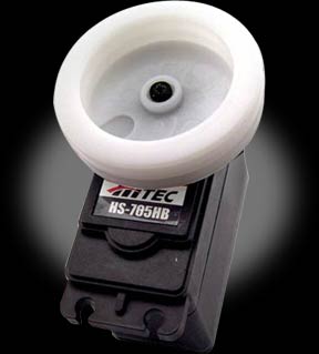 The HS-785HB sail winch servo with it's large drum wheel has 3 1/2 revolutions