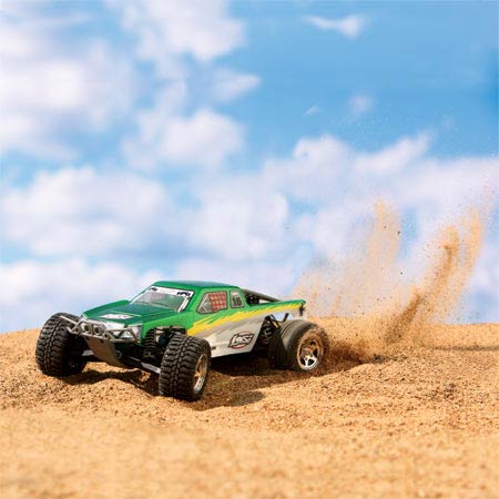 The installed Mini-280 motor provides ample torque for rough, off-road terrain as well as impressive straight-line speed when running on smooth surfaces. The Mini-Desert Truck utilizes industry standard 3-wire electronics for easy setup and compatibility or customizing. The Mini-Desert Truck includes a powerful 7.2V 1100mAh NiMH rechargeable battery pack and wall charger and can also accommodate 2-cell LiPos.