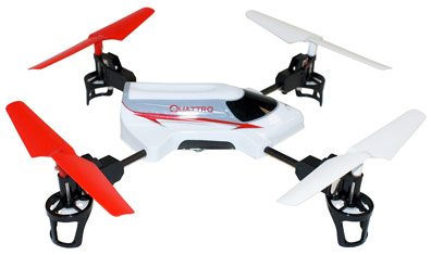 Graphite structure keeps the large QUATTRO stable and secure. Added bright LED running lights on the bottom of the support rods, why you ask? To open up the world of night flying! The lights are color matched to the blades so you always know which way you are going! Of course you can fly QUATTRO in daylight too.