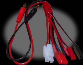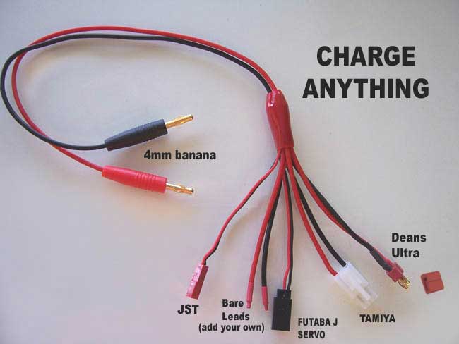 JST, Futaba J, Tamiya, or Deans Ultra. Also included are bare leads to add the