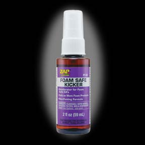 Safe on most foam products. Compatible with most other Foam Safe CAs. Works on Balsa, Spruce, Plywood, Plastic and Metals, etc. Forces most CAs to cure in 10 seconds or less. Increases Gap filling and fillet forming compability. Non-fuming formula.