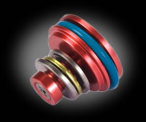The Matrix CNC Aluminum Piston head features light weight, durable and precision construction. Designed for all Marui system gearbox utilizing standard specification Airsoft AEG piston heads. Colors randomly selected from Red, Blue, Silver, or Black CNC Anodized Color.