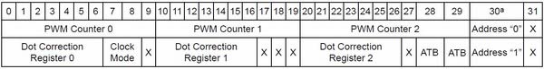 Each ShiftBrite has a 32-bit shift register. When a rising edge is detected at the clock in pin (CI), the data in pin (DI) value is shifted onto the first bit of the shift register, and the last bit sets the value of the data out pin (DO). After you have loaded a 32-bit packet into the shift register of each ShiftBrite in the chain, bringing the latch in pin (LI) from low to high causes the data to take effect (changing the color or updating a configuration setting). LI must be brought low again before clocking in additional data.