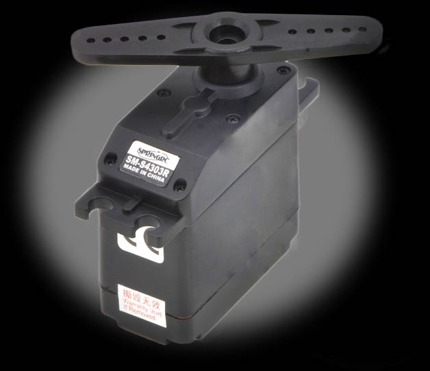 The SM-S4303R is a standard-sized servo that has been built by SpringRC specifically for continuous rotation, making it an easy way to get your robot moving. It features two ball bearings on the output shaft for reduced friction, and it offers easy access to the rest-point adjustment potentiometer. The servo can be controlled using a direct connection to a single microcontroller I/O line without any additional electronics, which makes it a great actuator for beginner robotics projects.