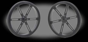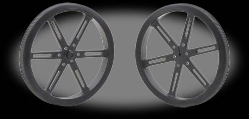 These black plastic wheels press fit onto the 3mm D shafts of our mini and micro metal gearmotors to make a nice drive solution for small robots. The wheels have silicone tires and measure 90 mm (3.54") in diameter. Two additional mounting holes make it possible to use the wheel with several of our universal mounting hubs. The wheels are sold in pairs.