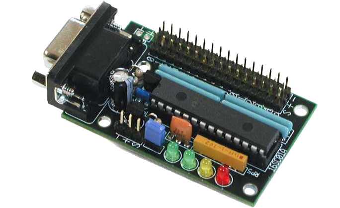 NOTE: The Serial 16-Servo Controller is a kit; before using it, you need to assemble the controller by soldering its components onto its circuit board. To use the servo controller in robotics projects, you need to connect it to your own servos and robot controller.