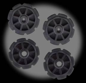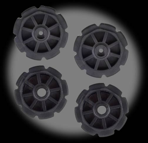 These 8-tooth, injection-molded sprockets are made to work with the rugged miniature tank tracks. This set comes with four sprockets made from sturdy, black ABS plastic: two sprockets for mounting on the 7-mm shafts of 224:1 and 143:1 gear motors, and two idler sprockets with 1/4in. holes that you can mount using shoulder bolts.