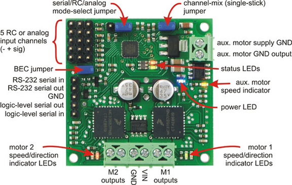 Mix-mode jumper allows for single-stick motor control of differential-drive robots<br>