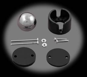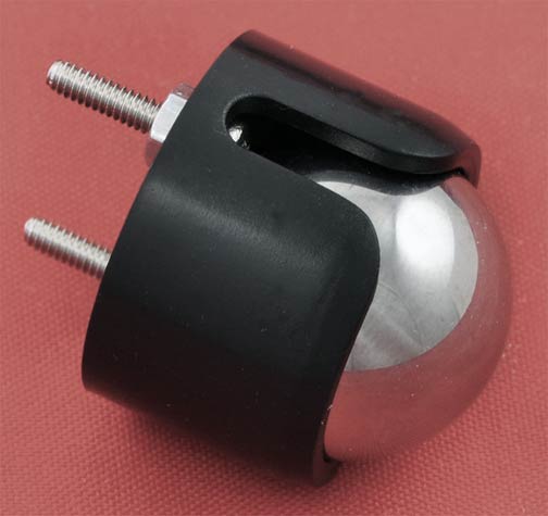 This ball caster kit includes a black ABS housing, a 3/4in. diameter metal ball, two spacers (1/16in. and 1/8in. thick), and two #2 screw sets.
