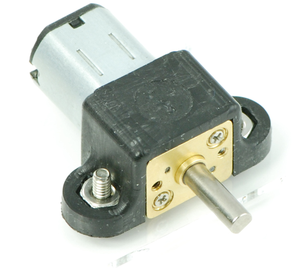 This gearmotor is a miniature (0.94" x 0.39" x 0.47"), high-power brushed DC motor with 150:1 metal gearbox, similar to Sanyo's popular 12mm gearmotors. These units have a 0.365"-long, 3 mm-diameter D-shaped output shaft.