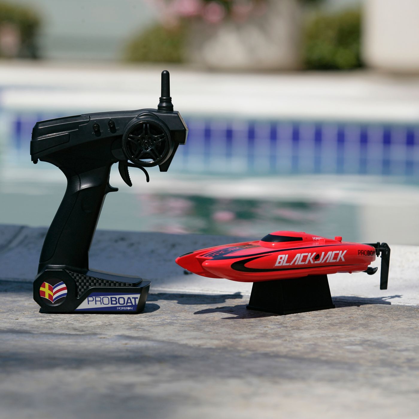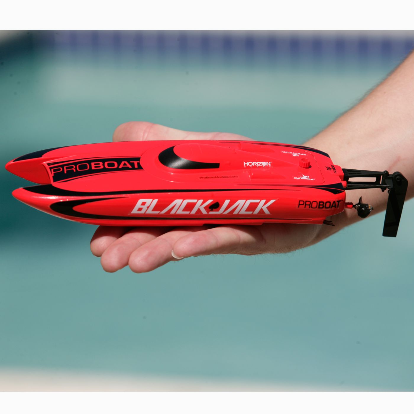 The flash of the red and black trim scheme means the Blackjack™ 9 catamaran has hit the water. Performance, style and fun are the staples of the Blackjack 9 and it has it in spades. Charge it up, launch it into the water, and get ready to have hours of fun on the smallest body of water.The Blackjack™ 9 catamaran may fit in the palm of your hand, but don't let the size fool you. It features surf-slicing speed and performance, yet it's easily transportable. At the pool, lake or pond, it's fun wherever you go.