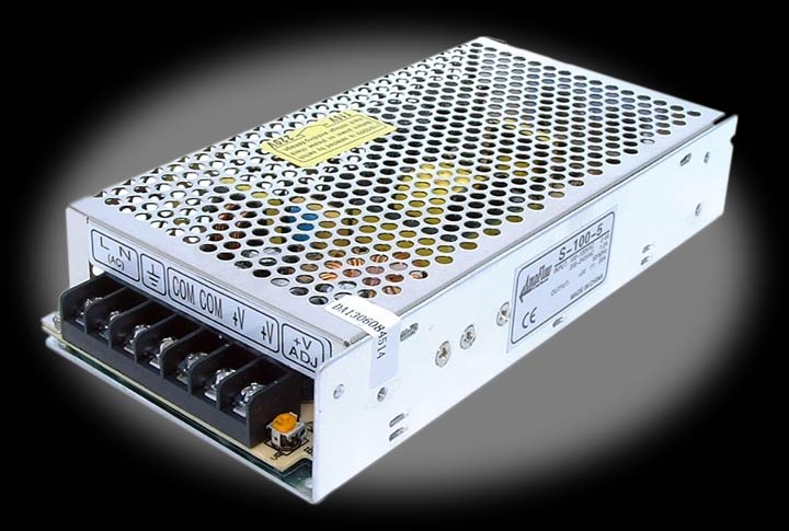 These high-efficiency power supplies have an output voltage that is adjustable by plus or minus 10%. And they include an EMI filter to minimize interference with radio signals, and a soft-start circuit that reduces the AC inrush current peaks.