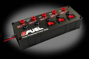 This 5-output power bus distributes power from a power supply to up to five electrical devices.
