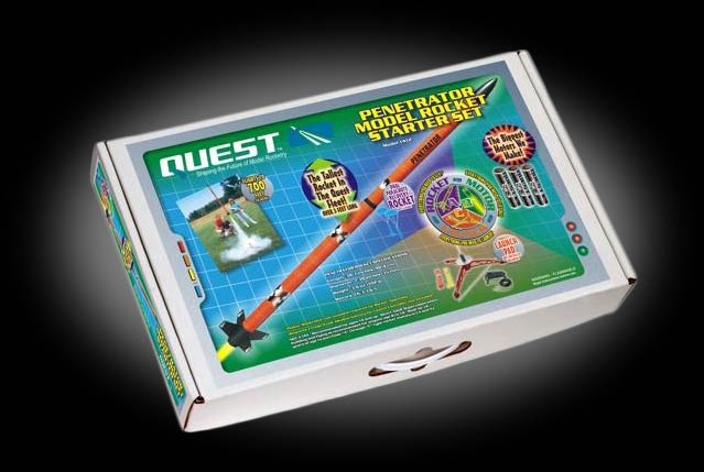 The Quest Penetrator Quick Kit starter set combines Quest's tallest rocket at 38 inches, the Penetrator Quick Kit, 3 C6-3 model rocket engines and a complete launch system. Everything you need for a day of flying model rockets. The launch equipment can be used to continue your adventure and fly the entire fleet of Quest rockets!