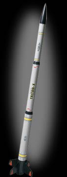 Imagine a model from a "Top Secret Government Agency" crossed with an "Inter-galactic deep space probe" and you have the design for the Triton X Rocket Quick Kit. The Triton X has great looking decals and that transitional body style that says "seriously cool". The Triton X is a model rocket that can be built in 15 to 45 minutes.