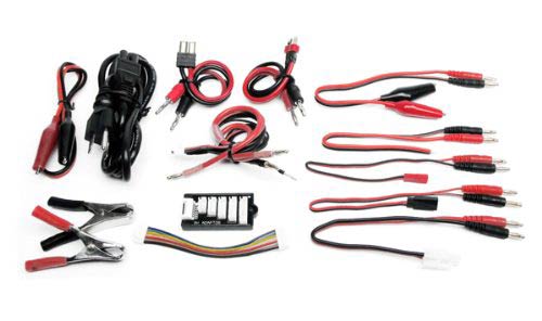 Includes: Pro-Connect Bullets, Alligator Clips, Tamiya connector, Deans Ultra Plug, Traxxas HC, Futaba RX, JST and open charger leads. Also included are a XH 2-6S balance board, removable DC input leads and an aluminum carrying case.
