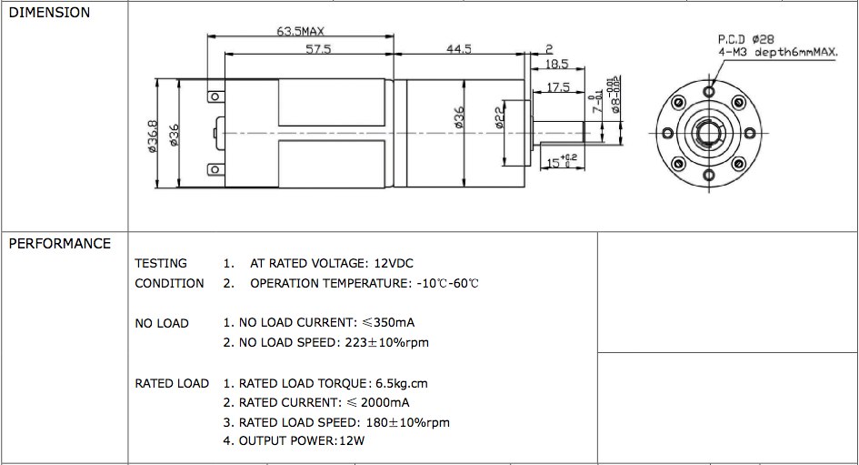 The Renegade Encoded Planetary Gear Motors were made to provide the lowest possible power consumption and duty cycle. These are default motors used in the OS Bots Renegade bases. They are designed to be run at 12V. Each motor comes with a 8" cord that plugs into the motor for encoder and power input (connector has .1" standard header spacing)