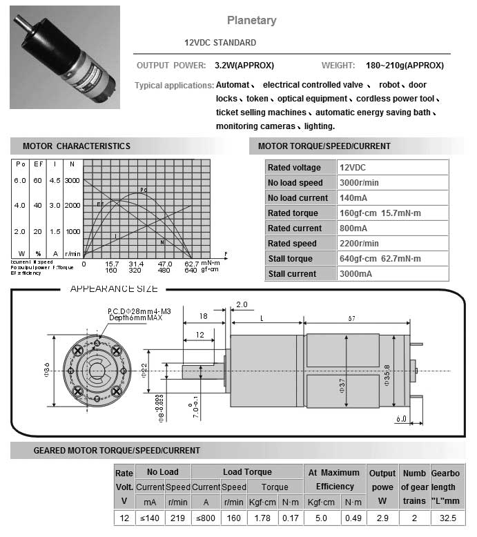 The Renegade Encoded Planetary Gear Motors were made to provide the lowest possible power consumption and duty cycle. These are default motors used in the OS Bots Renegade bases. They are designed to be run at 12V. Each motor comes with a 8" cord that plugs into the motor for encoder and power input (connector has .1" standard header spacing)