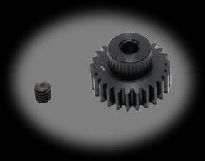The "Pro" Pinions are precision machined from aircraft aluminum, lightened and then they're coated twice with a super hard, black anodize. Recommended for onroad, but they can be run off road. Pinions are stamped with tooth number. 1/8 inch bore. One 5-40 set screw included.